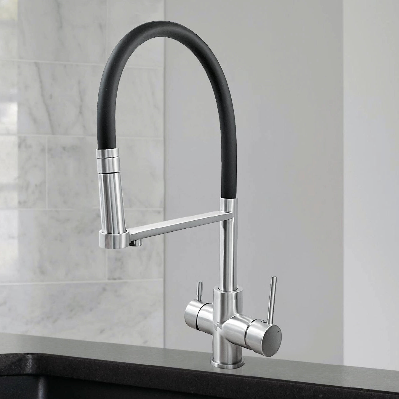 Ein speziell konzipierter Wasserhahn sorgt dafür, dass das hochwertige, gefilterte Wasser nicht mit dem unbehandelten Leitungswasser in Berührung kommt. Dadurch bleibt die Wasserqualität erhalten. Zudem bieten verschiedene Modelle die Möglichkeit, sowohl gefiltertes als auch normales Hauswasser komfortabel zu nutzen. Dies ermöglicht eine praktische Handhabung im Alltag, ohne den hohen Reinheitsgrad des Evodrop-Wassers zu beeinträchtigen.